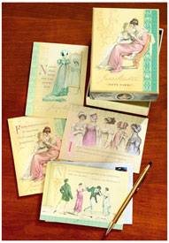 Tuck a few words of Jane Austen’s wit and wisdom into an envelope—adding a phrase or two of your own. These pretty pastel Jane Austen Note Cards are cheerfully decorated with early nineteenth-century illustrations. Even the pale green envelopes feature the hint of a vintage engraving. Available at http://www.basbleu.com/