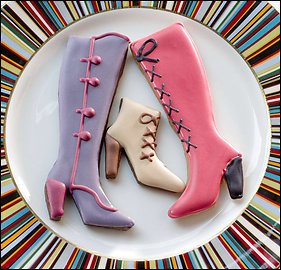 In my cup is a most delicious sip of pear-caramel tea. The waiter presents a tier of tiny canapes, identifying each: crust-less sandwiches of ham, cheese and cucumber; cherry tomatoes stuffed with couscous; salmon in a snaillike curl. Finally, the waiter offers what I’m here for: a fanciful array of cakes and sweets, whose colors and shapes replicate the creations of top fashion designers for the season. Framed photos display each item’s inspiration. The pink-iced, chocolate-sashed cookie-dress is a Michael Kors; the sky-blue-iced, lemon-sponge, handbag-shaped concoction, an Anya Hindmarch; in all, nine delectable works of art. And truly, the sight of my proper Englishman at the next table biting into a pastry shaped like a Manolo Blahnik stiletto is quite worth the price of the tea on its own.