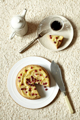 This week’s recipe for a Lemon cake with lime curd and pomegranate topping comes from British food stylist Kate Wesson. If you can’t find lime curd where you live, you can always use the lemon curd recipe by Marjorie Taylor as a guideline to making your own. -Kristina