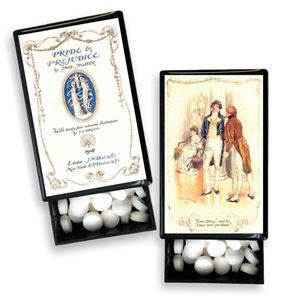 These elegant little lacquered slide boxes—each measuring a demure 1¾”x2¾”x¾” and made of recycled plastics—open to offer a mint (or whatever other tiny somethings you choose to keep inside them, once the included supply of mighty little breath fresheners is gone). One box features a reproduction of a 1907 cover of Jane Austen’s most renowned work, and the other shows a scene from the novel wherein Mr. Bingley encourages his reserved friend, “Come, Darcy, I must have you dance.” (What an ideal moment for a mint!) Austen fans, of course, simply must have these glamorous, literary, and multifunctional accessories. (I like to use mine on trips for carrying jewelry.) Available form Bas Bleu.