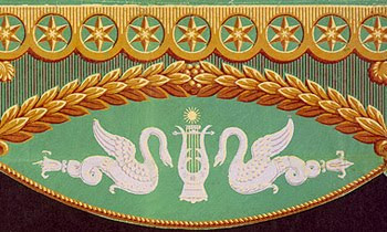 Featured are wallpaper patterns and border samples from the circa 1815 Regency period. These wallpaper designs are from the Philadelphia firm of Messrs. Virchaux & Co.