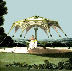 Rustic garden seats, bowers, pergolas, and other small buildings decorated Regency era gardens (though certainly very sparingly). Featured are two unusual designs for garden seating introduced in 1816. Read full story.