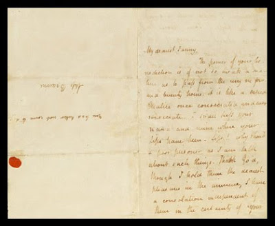 The doomed love affair between Keats and Fanny Brawne is among the most famous in the history of literature and continues to fascinate succeeding generations as the success of the 2009 award winning film ‘Bright Star’ showed. Indeed, a note scribbled by Keats on the envelope, “You had better not come today” appears as a line in the film – a poignant reminder of the poet’s condition.