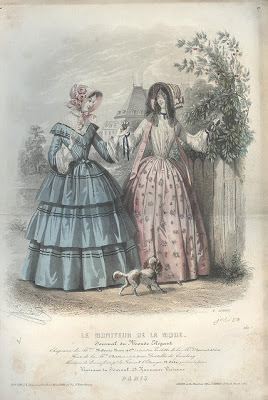 Description: Two women outdoors – one in a walking-dress and one in a somewhat less formal day-dress.