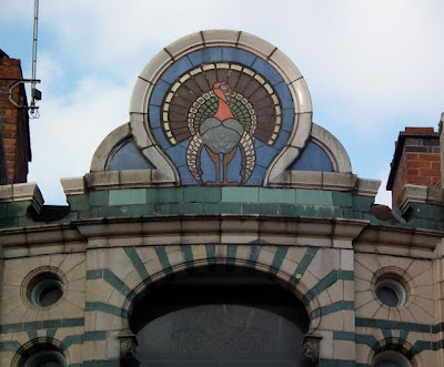 “The Turkey Café in Granby Street is one of his smaller buildings, but its central position, unusual style, and rich decoration make it one of his most noticeable. Wakerley designed it in Art Nouveau style in 1900, with the odd-shaped arches and colour scheme indicating a certain Oriental influence.”