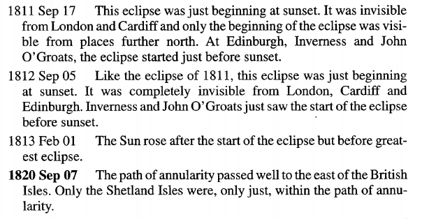 From 1775 to 1817 there were 10 partial eclipses that were visible from somewhere in the United Kingdom. For a complete list of solar eclipses visible from the United Kingdom between AD 1501 and AD 2500, see the Journal of the British Astronomical Association, February 2001.