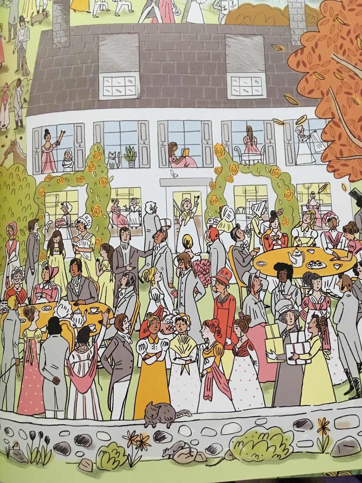 Synopsis: Can you find Jane Austen hidden in ten scenes from her beloved novels? This beautiful new book introduces young children to Austen’s intriguing Georgian and Regency-era world, filled with all the makings of the best stories—sparky humor, legendary showdowns, secrets, love and triumph. Children spot the main characters in ten major scenes from Pride and Prejudice, Sense and Sensibility, Emma, Persuasion, Northanger Abbey, and Mansfield Park. First read a snappy synopsis of the story, then explore key stages through a simple, illustrated narrative as you meet the main characters. Next absorb the wonderfully detailed illustrations as you search for the characters and the elusive author in the big and bustling main artworks. Katy Dockrill creates the fun and engaging scenes that house Jane’s immortal characters, from imperious Lady Catherine to timid Fanny Price, wicked Mr Wickham to sensible Elinor Dashwood, and proud Mr Darcy to feisty Elizabeth Bennet. Getting to know them all will keep young readers enthralled for hours.