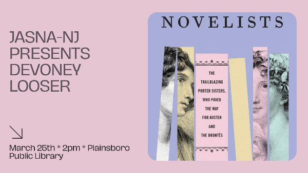 Explore the tumultuous lives of Jane and Anna Maria Porter with JASNA-NJ and the Plainsboro Public Library on March 25th at 2pm when we host Devoney Looser, the author of Sister Novelists: The Trailblazing Porter Sisters, Who Paved the Way for Austen and the Brontës!